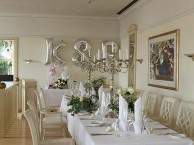 Ein prickelnder Sekt-Empfang auf der Hotelterrasse könnte den kulinarischen Teil Ihres Hochzeitsfestes eröffnen. Die stilvoll eingerichteten Räumlichkeiten bieten Platz für 60 bis 140 Hochzeitsgäste und werden nach individuellen Wünschen dekoriert. Hier zeigt sich einmal mehr die jahrelange Erfahrung der Mitarbeiter, die mit aufmerksamen Service, Professionalität und persönlichem Engagement für eine ganz besondere Wohlfühlatmosphäre bei der Hochzeitsfeier sorgen.